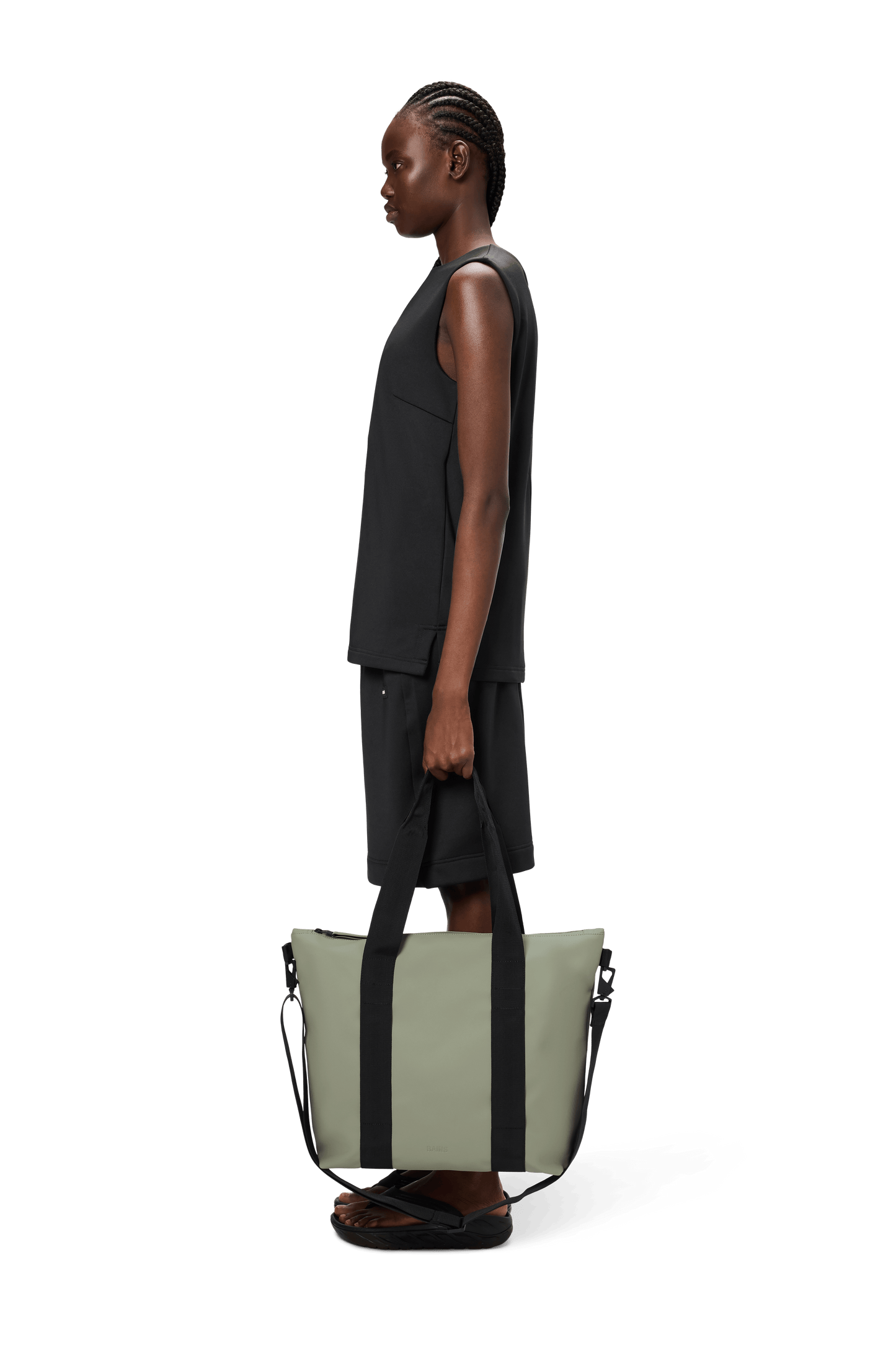 Tote Bag Mini is a waterproof tote perfect for shopping, commutes or the office. Characterized by an elevated utility-look and functional details. The full-length coated zip reveals a spacious main compartment for everyday essentials. Designed to meet your carry-needs, Tote Bag Mini offers various carrying options through its detachable shoulder strap and long hand/shoulder handles. Carry handles feature attachment rings for small items like keys.