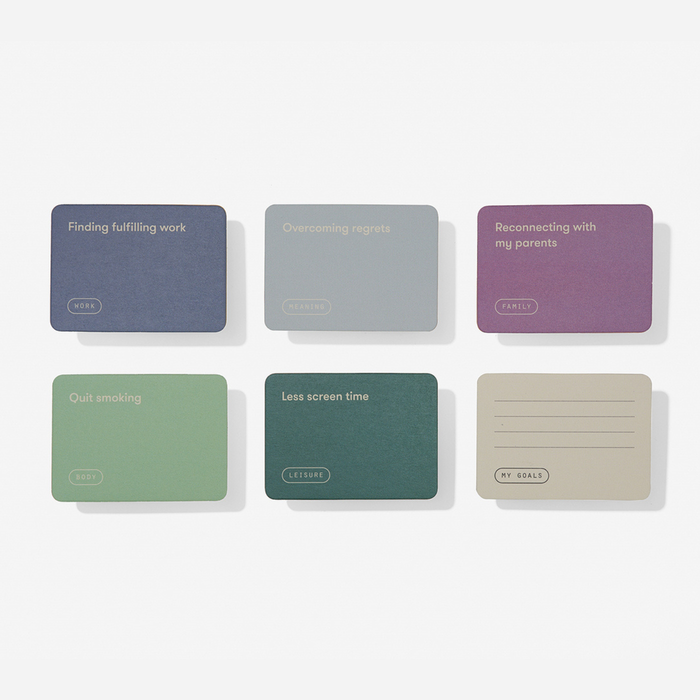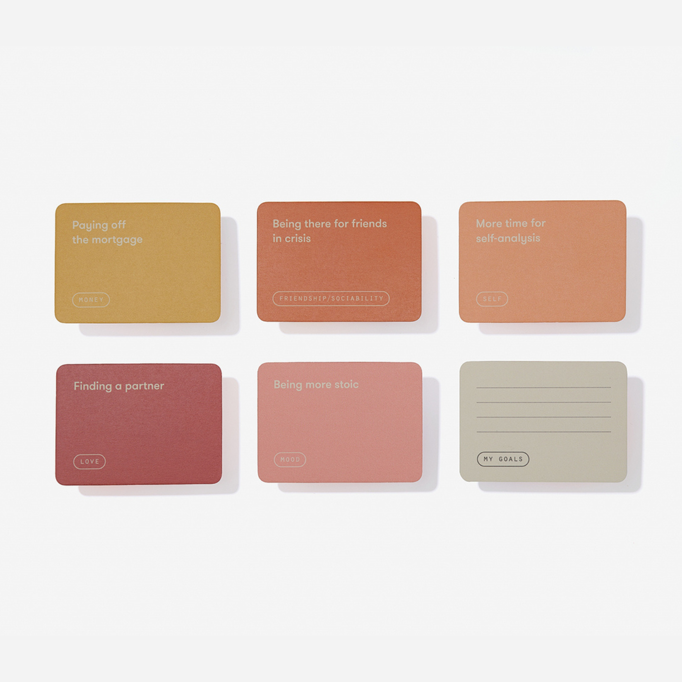 This is a tool for helping us focus on what we need to be fulfilled so that we can direct our energies and thoughts most effectively. It contains 160 cards detailing our most common ambitions and longings, along with instructions on how to reflect on our goals, arrange them in a logical order of priorities and, where necessary, weigh up trade-offs. Using the cards will help us to reveal our true purpose. The cards can be displayed, photographed or kept close to hand as a reminder of the path ahead.