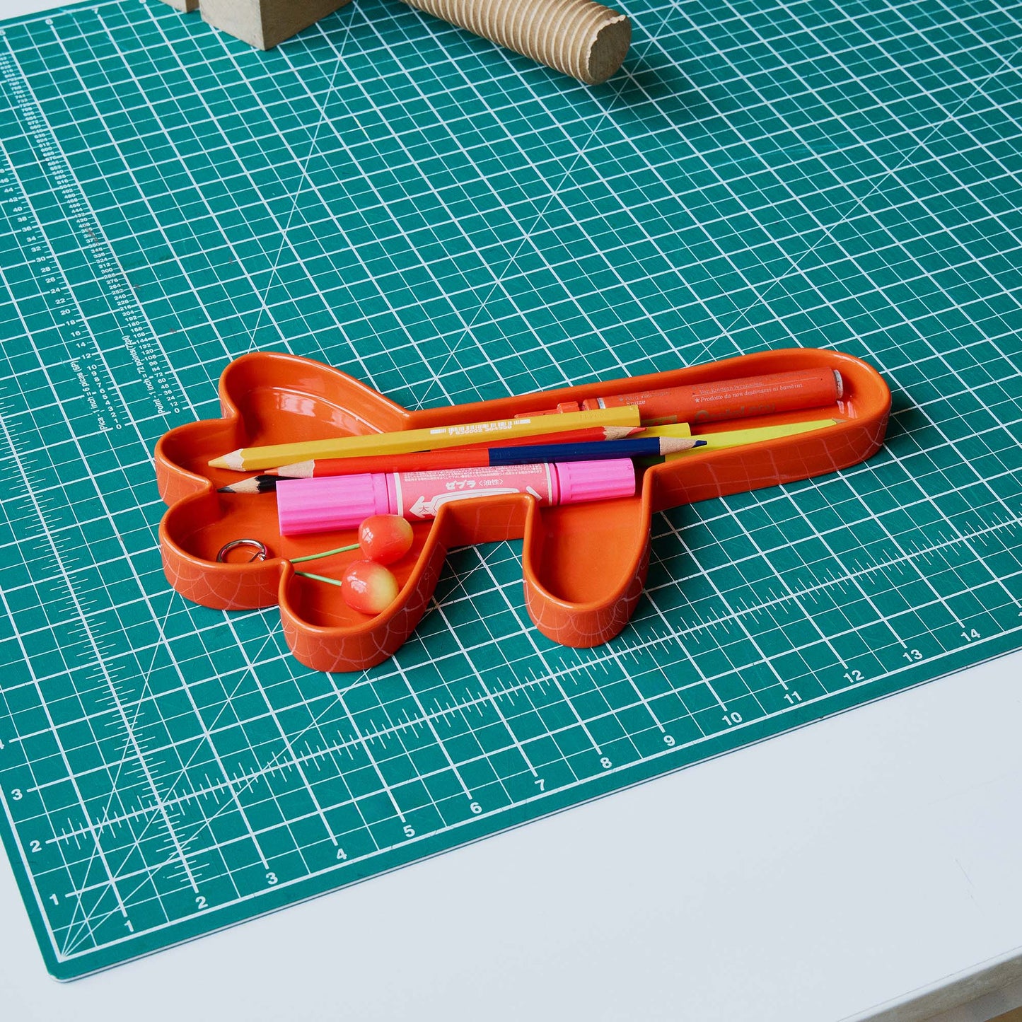 The Oddments Pen Tray is a fun and practical accessory for the home office or workspace, providing a small storage solution for stationery and desk accessories.