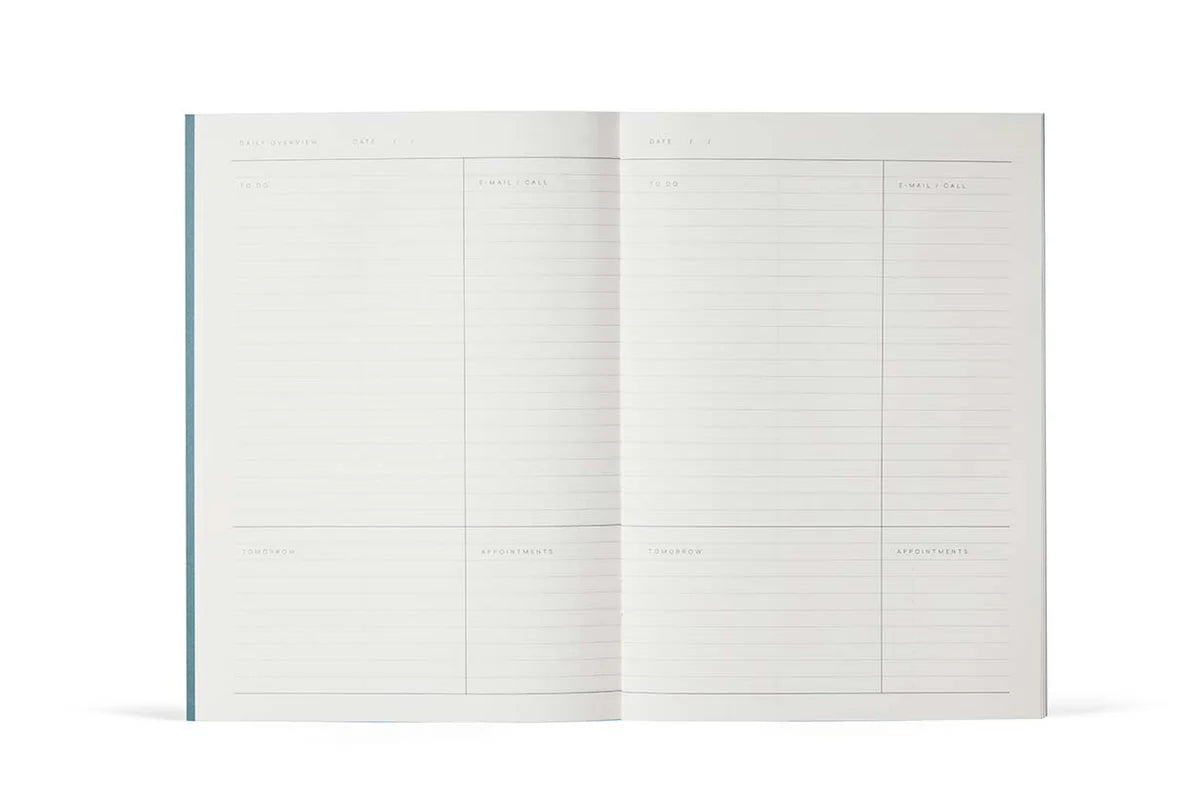 The Work Journal has two main sections: One section for structuring your daily to do's, priorities and appointments; and one section for notes. The book is designed to slot into your daily work routines. There is space to plan the day’s activities, pages to summarize your meetings and pages for notes, thoughts and ideas.
