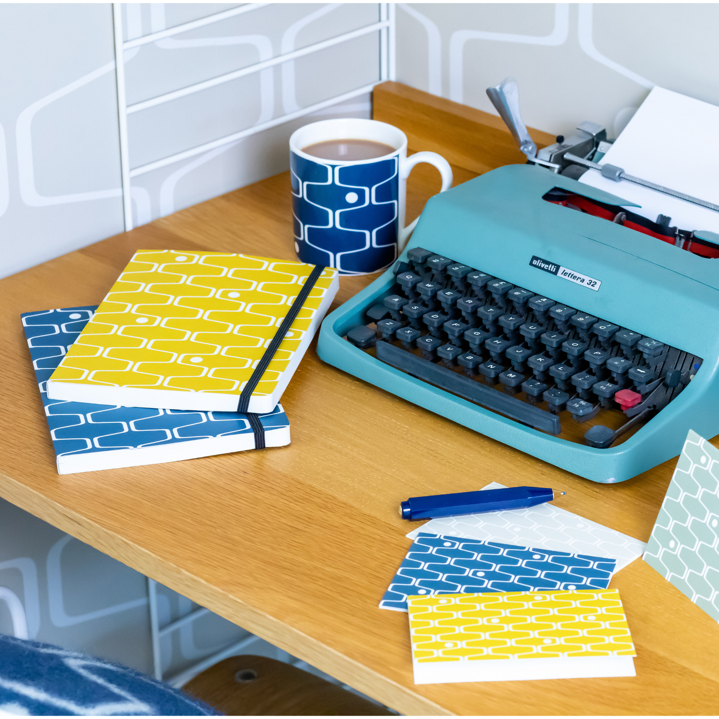 The pattern known as 'Net & Ball' was originally created by Peter Moro and Leslie Martin for the carpet in Royal Festival Hall when it opened at the Festival of Britain in 1951. It is based on a square wave seen with an oscilloscope - the visual representation of sound.