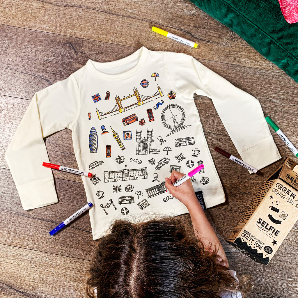 The products are designed, handmade and handprinted in the UK exclusively for the Selfie Clothing Co. The perfect gift for any child with a creative edge or a group activity for parties or play dates.