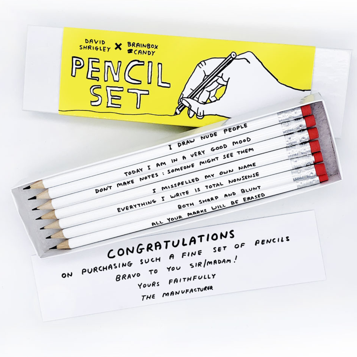 Funny White Pencil Set by David Shrigley