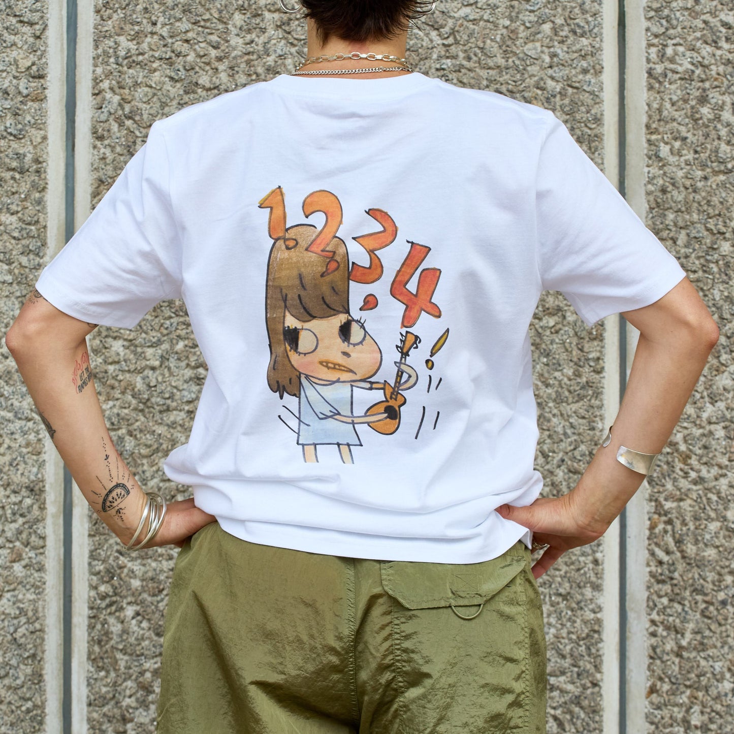 Unisex t-shirt, exclusively designed for the Hayward Gallery Shop for the Yoshitomo Nara exhibition featuring Yoshimoto Nara's artwork 1, 2, 3, 4!, 2019.