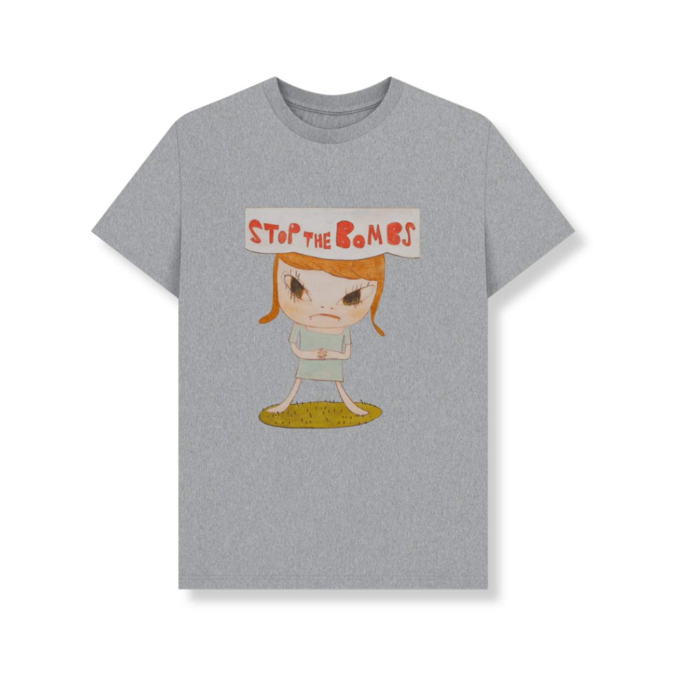 Unisex t-shirt, exclusively designed for the Hayward Gallery Shop for the Yoshitomo Nara exhibition featuring Yoshimoto Nara's artwork Stop the Bombs, 2019.