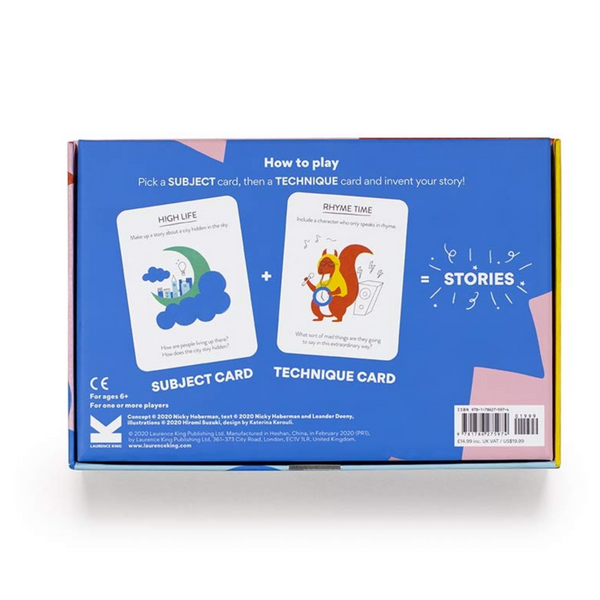 This creative game for writers and storytellers of all ages is beautifully produced to the highest standard and comes in a sturdy box, vividly illustrated by Japanese illustrator Hiromi Suzuki and co-authored by Nicky Hoberman and Leander Deeny.