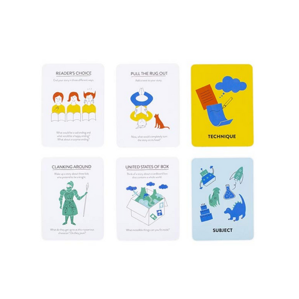 Unleash thousands of stories from the depths of your imagination! Pick a subject card and a technique card and use them to create your own madcap tales. These 80 cards will provide hours of storytelling and creative writing entertainment. All you need is a pencil and paper, and a pirate ship, and a warrior princess, and an elephant…
