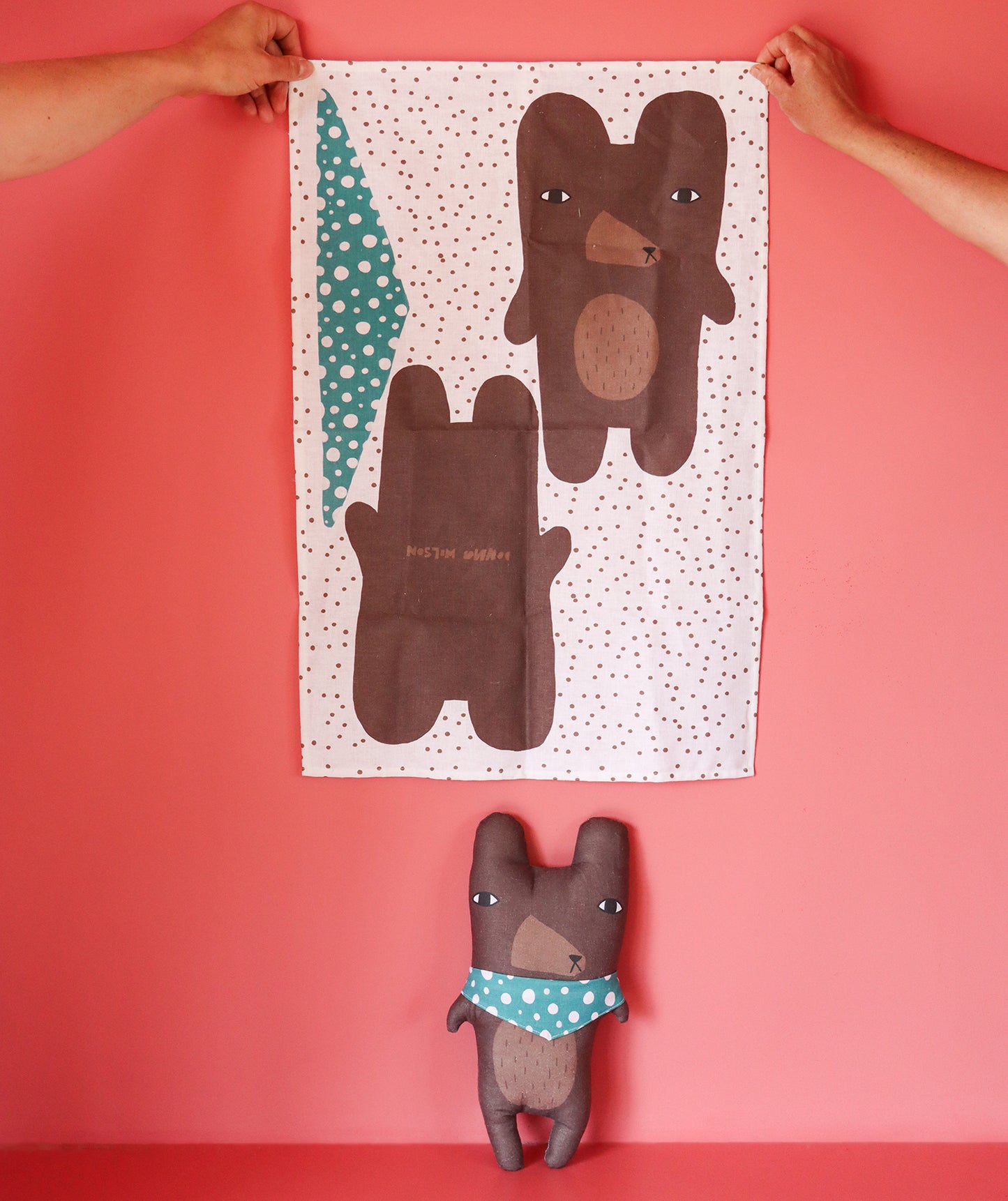 Snip around the shapes, sew along the edges and stuff to make a Donna Wilson bear – or keep in one piece and use as a tea towel to dry your dishes!