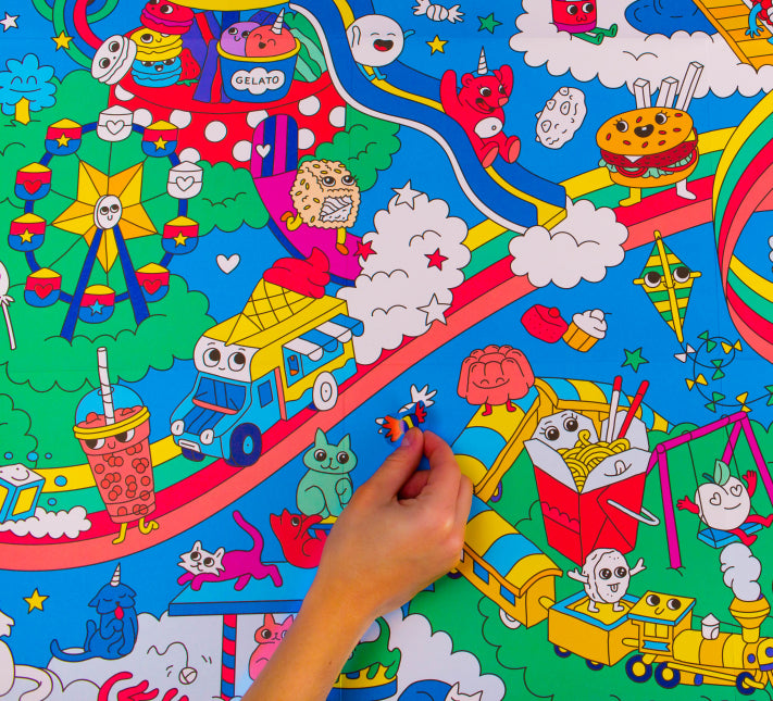 Have fun with a giant “seek & find” poster: with more than 100 stickers to keep you busy for hours.