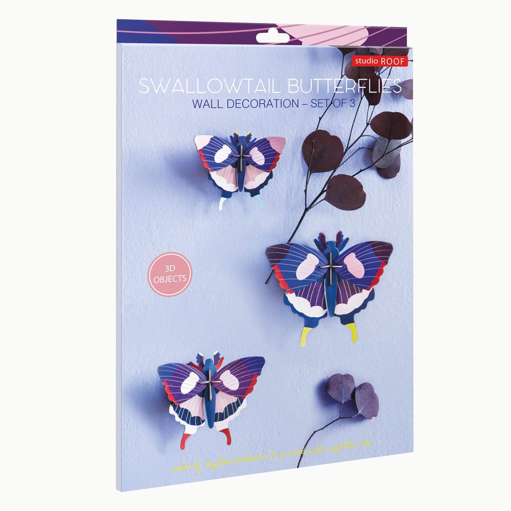 Add a pop of colour to your wall with this colourful set of 3 Swallowtail Butterflies, 3D cardboard wall decorations by Studio ROOF.