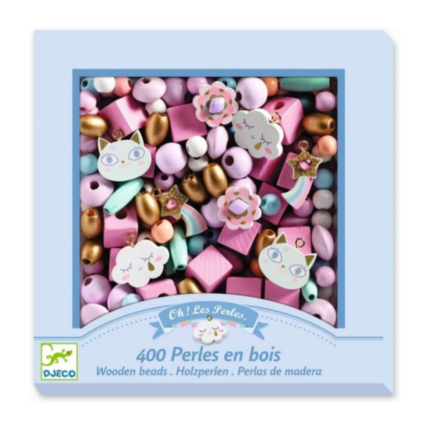 These wooden beads are a box containing more than 400 beads to create pretty jewellery. A well-thought-out assortment of colours and shapes for an always harmonious result. The child threads the beads onto the threads to make pretty necklaces or bracelets with complete freedom.