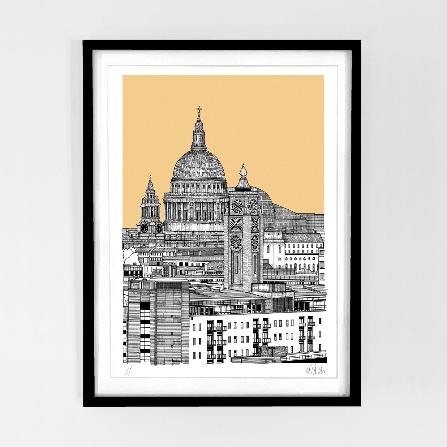 Screen-printing, more than any other technique, gives Will the precision and control he needs to reproduce his very detailed line drawings. To this detail, he likes to add bright blocks of colour and an element of abstraction - none of his drawings are exact renderings of what he sees - in order to produce urban scenes that are unique to his style. All of his original works are hand-drawn, then each edition screen-printed by Will in his studio.
