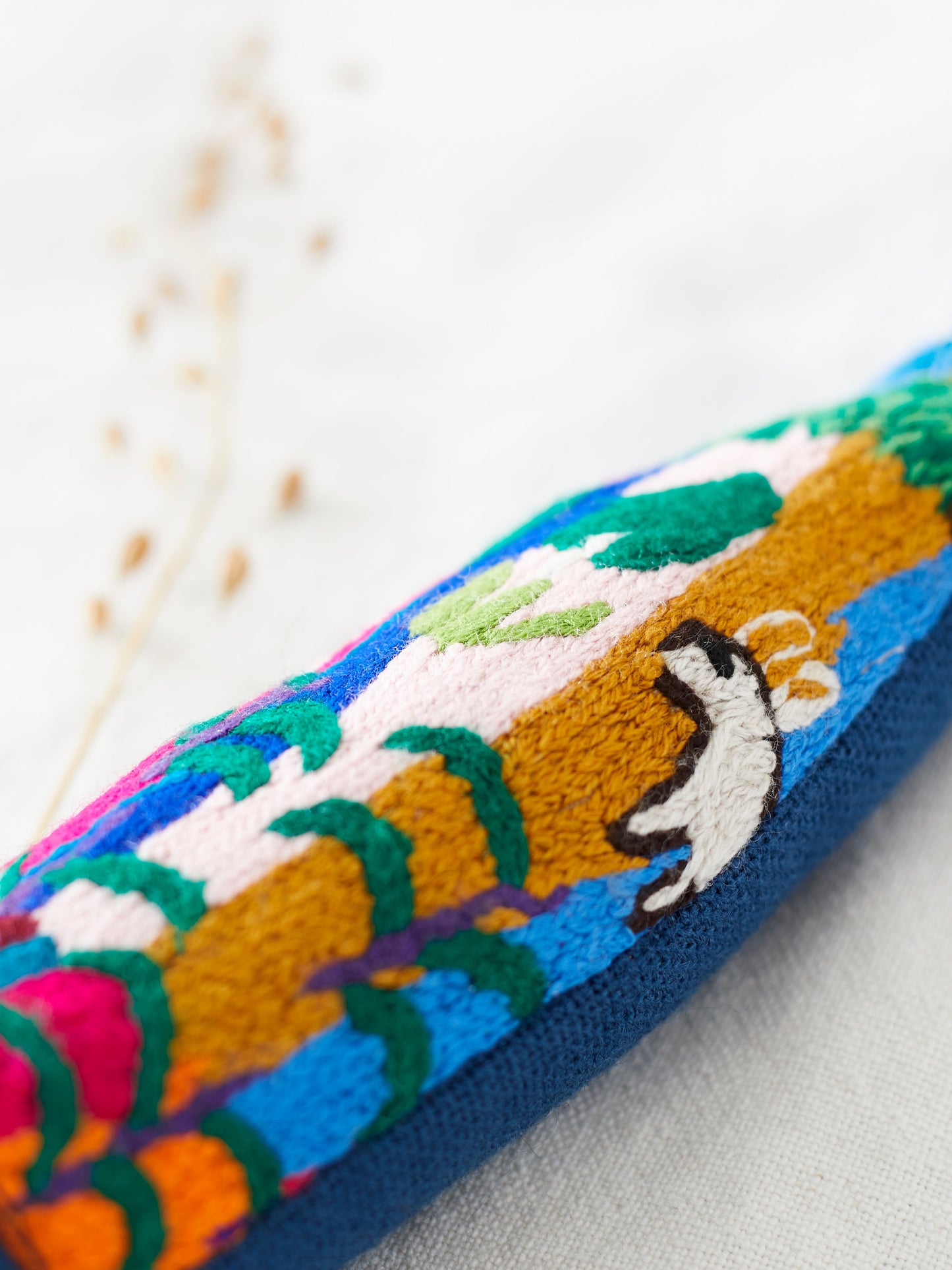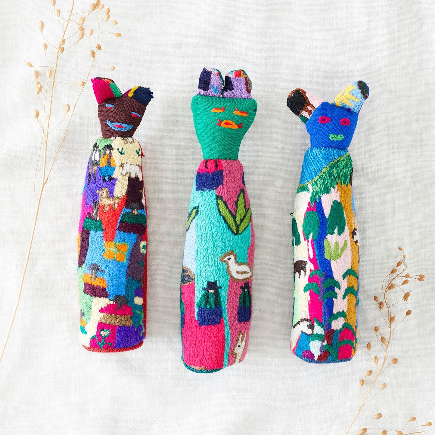 Regular price £21.00These Curious Creatures are embroidered and sewn by artisan producers from the Simiatug Samai Development Association in Bolívar, Ecuador. Known locally as ‘Tombos’, (Tumblers) they were traditionally created as skittles. They are proving to be very popular as adornments because of the wonderful splash of colour and character they bring to any room. Made using jute and coloured thread, each one is completely unique, the embroidered scenes inspired by the daily life and surroundings of the artisans and no two faces are the same.