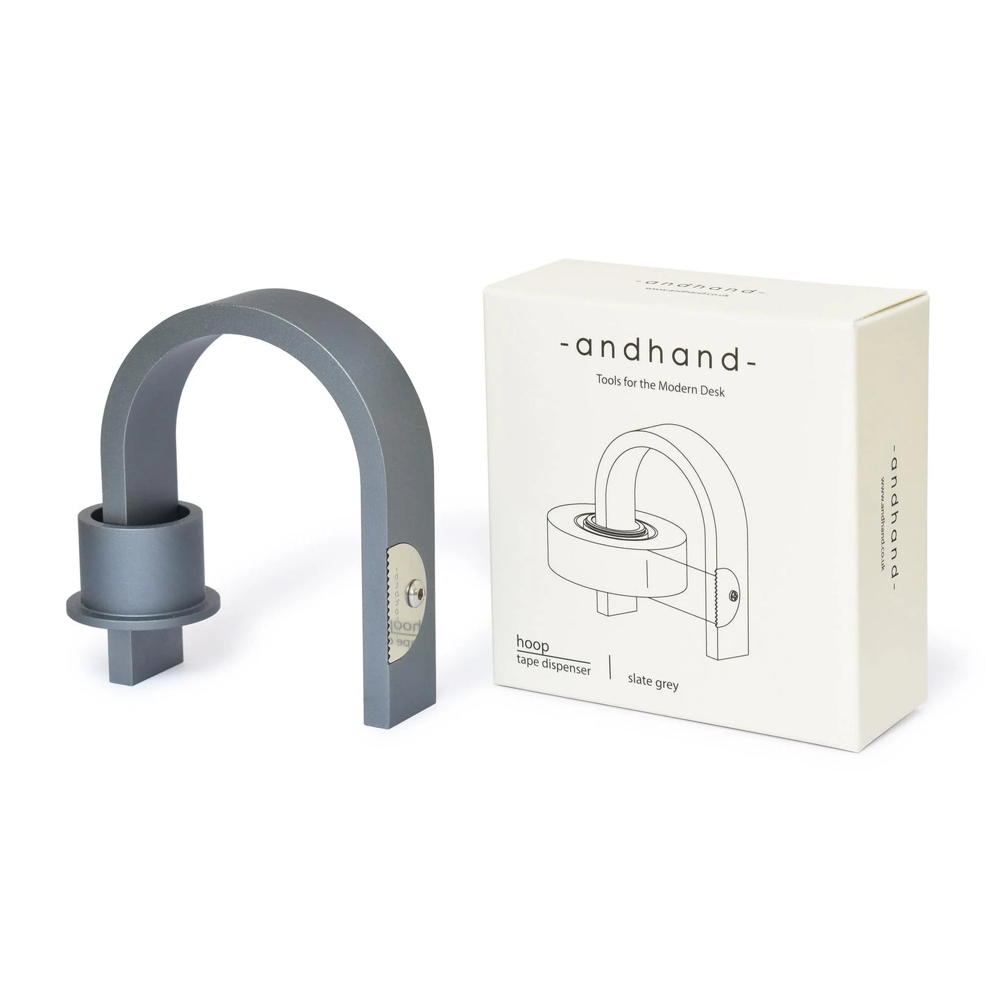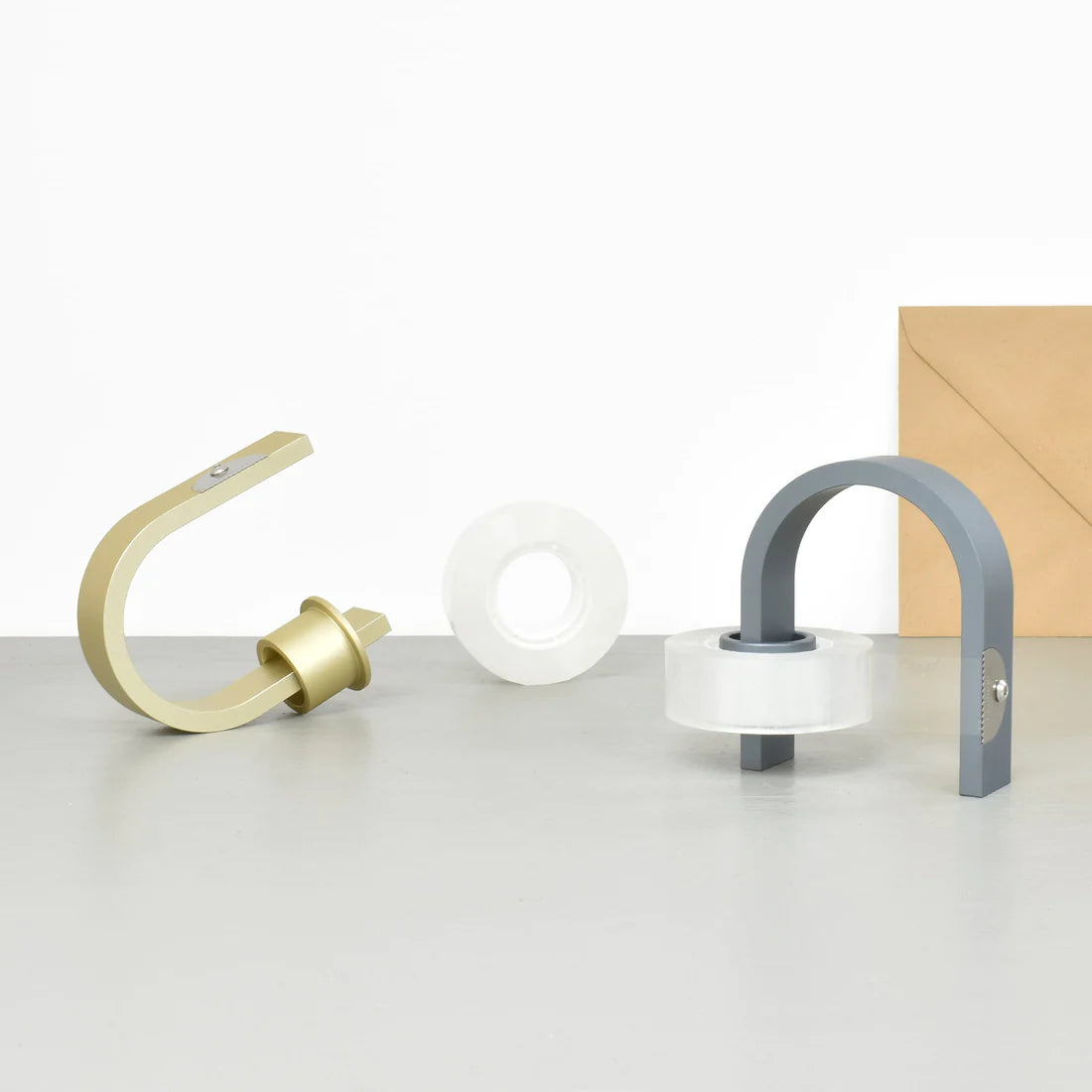 The all metal construction Hoop tape dispenser takes a simple unassuming form that brings elegance to any desktop space whilst also being an extremely durable and high performing piece of kit. The combination of precision machined aluminium and custom made stainless steel blade ensure a clean cut through the tape.
