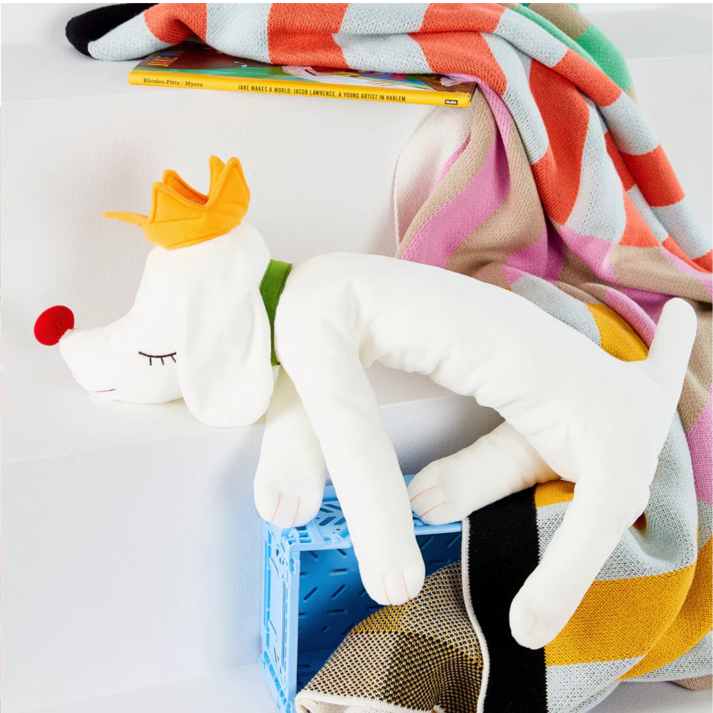Created by Yoshitomo Nara, this oversized, regal Plush Pup King is the perfect addition to any room, whether it's a child's playroom or a stylish accent in the living room.