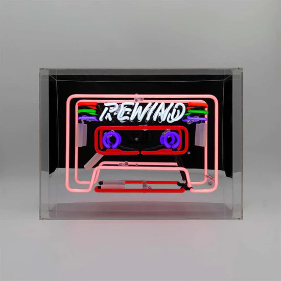 The ‘Cassette’ glass neon box sign brings a cool authentic glow to your home. Playful retro style. It’s a must-have statement lighting piece that also makes a fabulous gift!