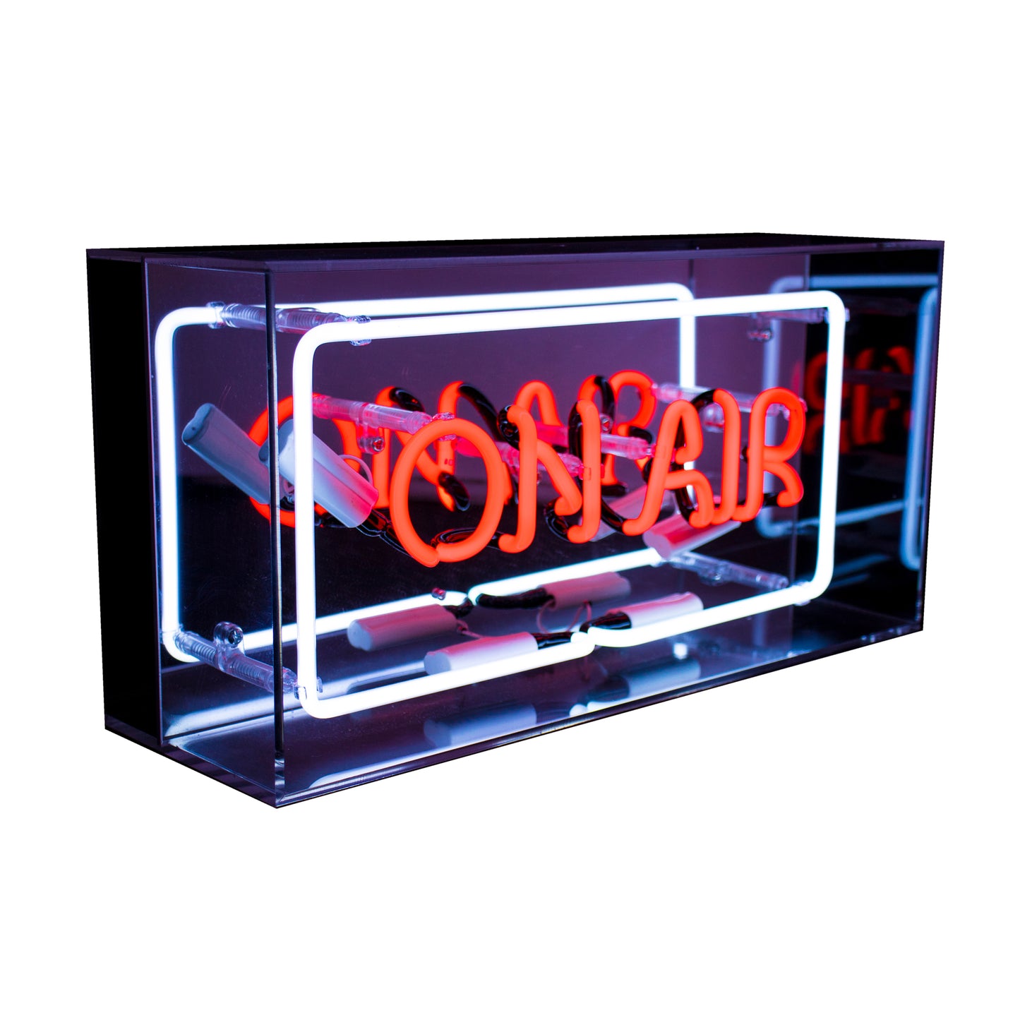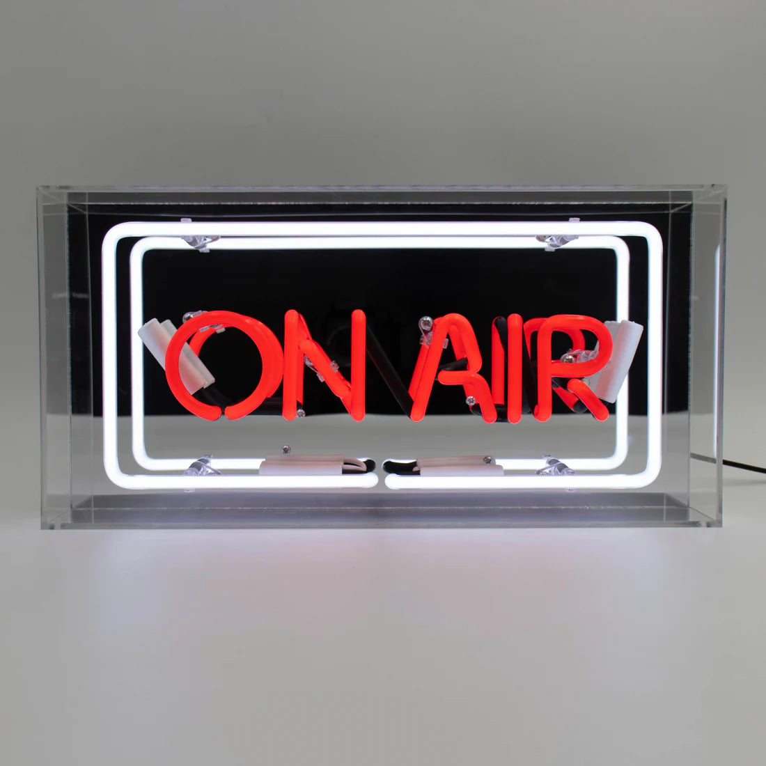 The ‘On Air’ glass neon box sign brings a cool authentic glow to your home. Playful retro style. It’s a must-have statement lighting piece that also makes a fabulous gift!
