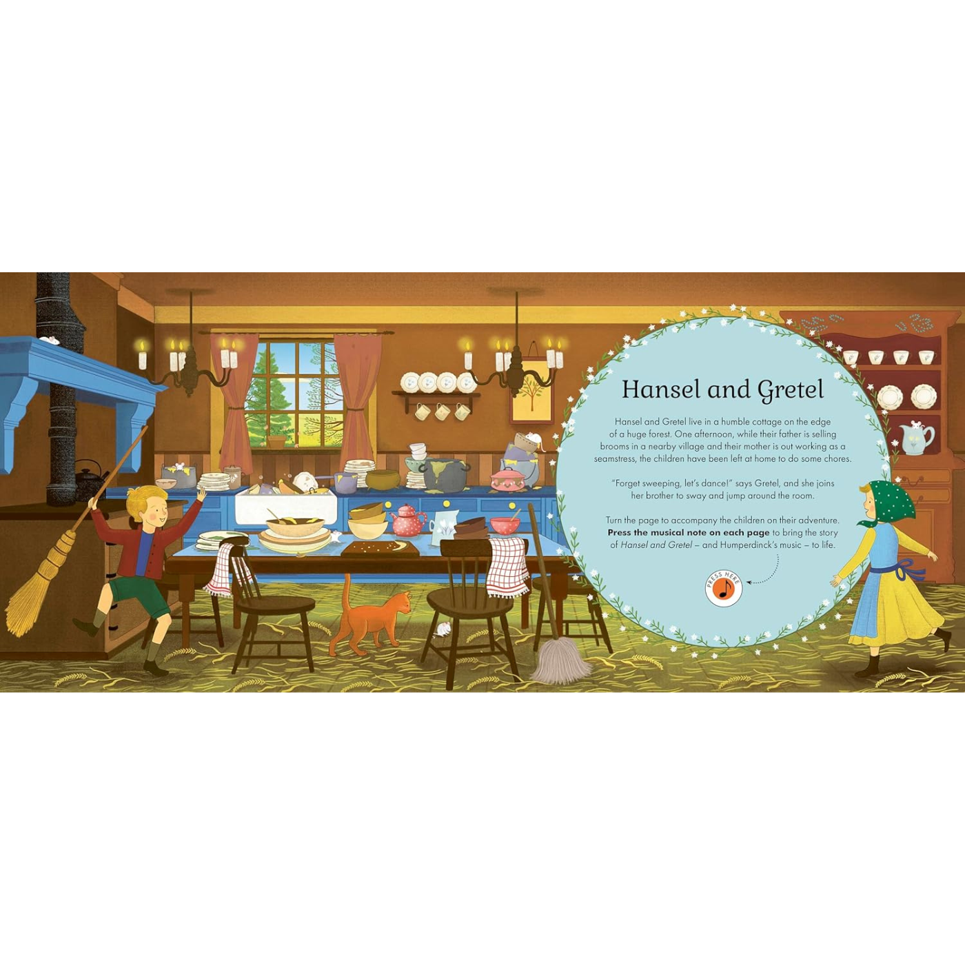 Step into a forest filled with music and magic in this thrilling retelling of Hansel and Gretel, inspired by the enchanting sounds of Humperdinck’s opera. With the push of a button, hear the real orchestra play as the story unfolds across the pages!