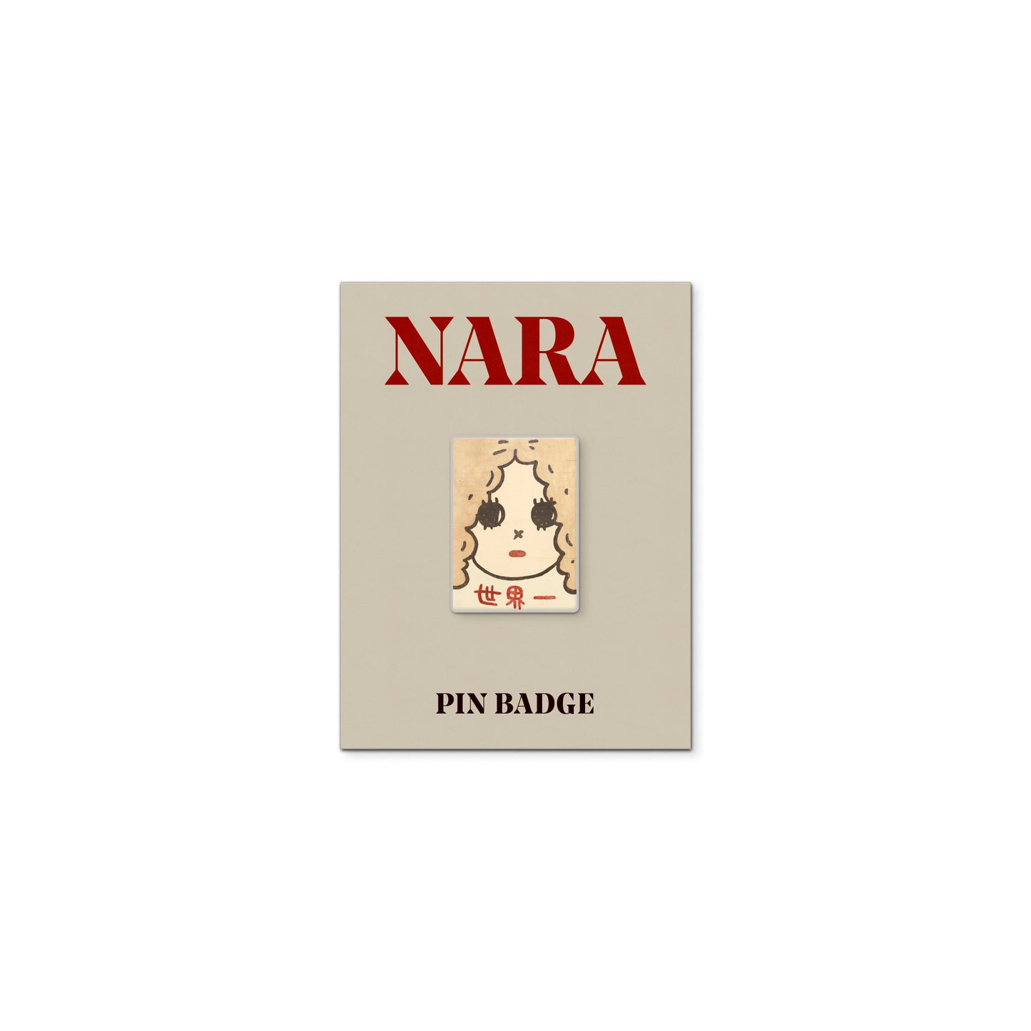 An enamel badge featuring Nara's work Top of the World, 2024. Created exclusively for the Yoshitomo Nara exhibition at the Hayward Gallery.